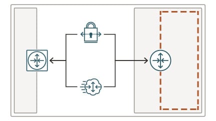 This architecture provides the necessary connectivity between multicloud private networks and Oracle's cloud services and applications without directing traffic through the public internet.