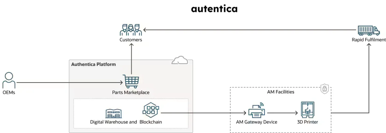 The deployment of OCI Blockchain Platform enables Autentica to explore and harness the potential of blockchain for enhancing the authenticity, security, and traceability of 3D-printed parts within their supply chain and e-commerce platform. This service supports workloads associated with blockchain technology, ensuring the verification and certification of the origin and quality of 3D-printed parts, particularly in sectors like automotive, space, aerospace, defense, health, and life sciences. It plays a crucial role in providing transparency and trust in Autentica’s operations and transactions, benefiting both the company and their customers.