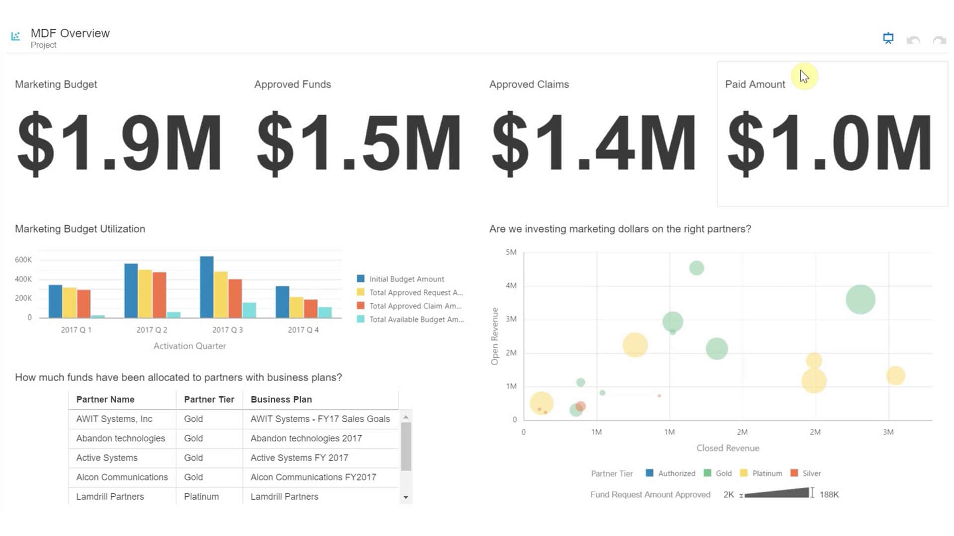 Optimize your partner program and overall ROI by identifying your top performing partners with connected business intelligence tools, evaluating MDF spend versus return, and assessing and revamping compensation plans.
