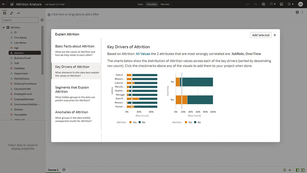 Using embedded machine learning, quickly understand the factors that influence attrition of high performers and new hires.