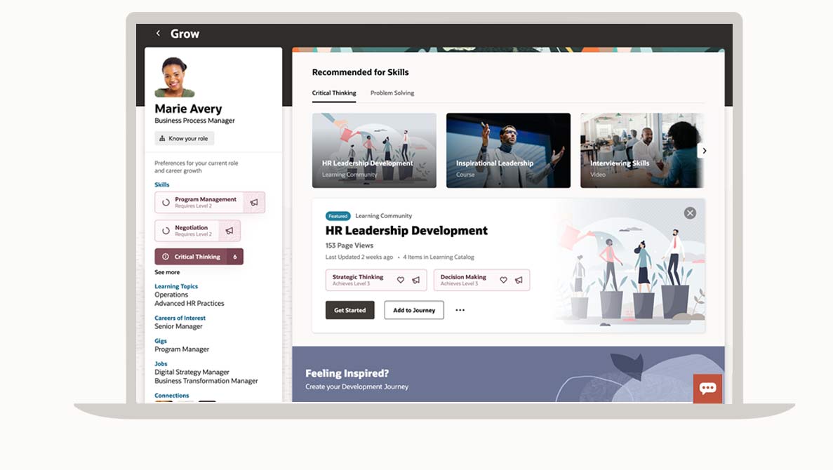 Provide employees with recommendations for the most relevant development opportunities that automatically adapt to changes in an individual’s role and the business.