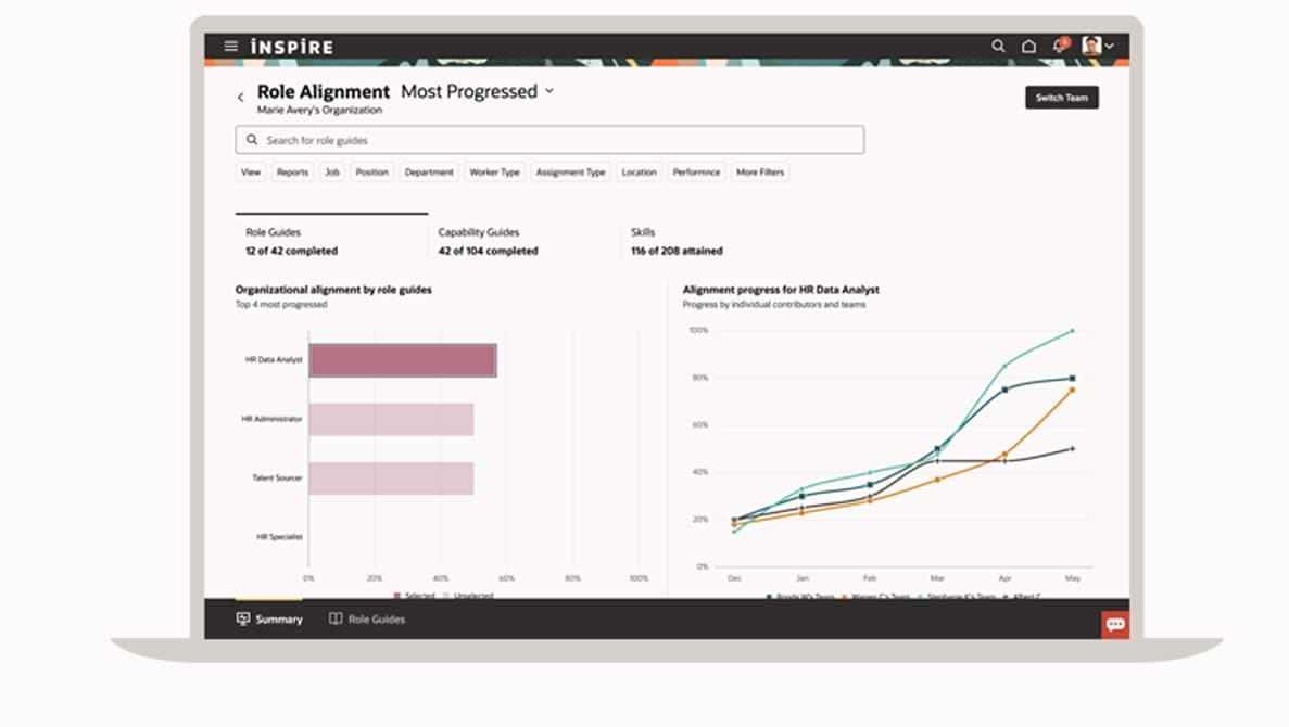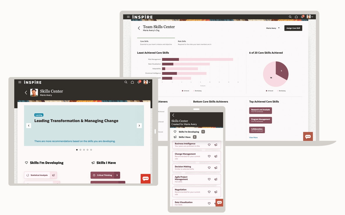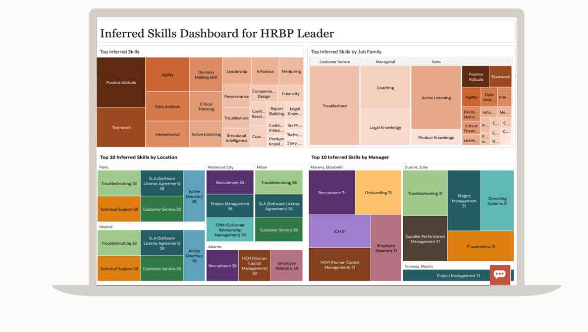 Help business leaders develop an agile workforce and drive business outcomes by providing them with a visualization of how employees’ skills align with the skills requirements of their specific roles.