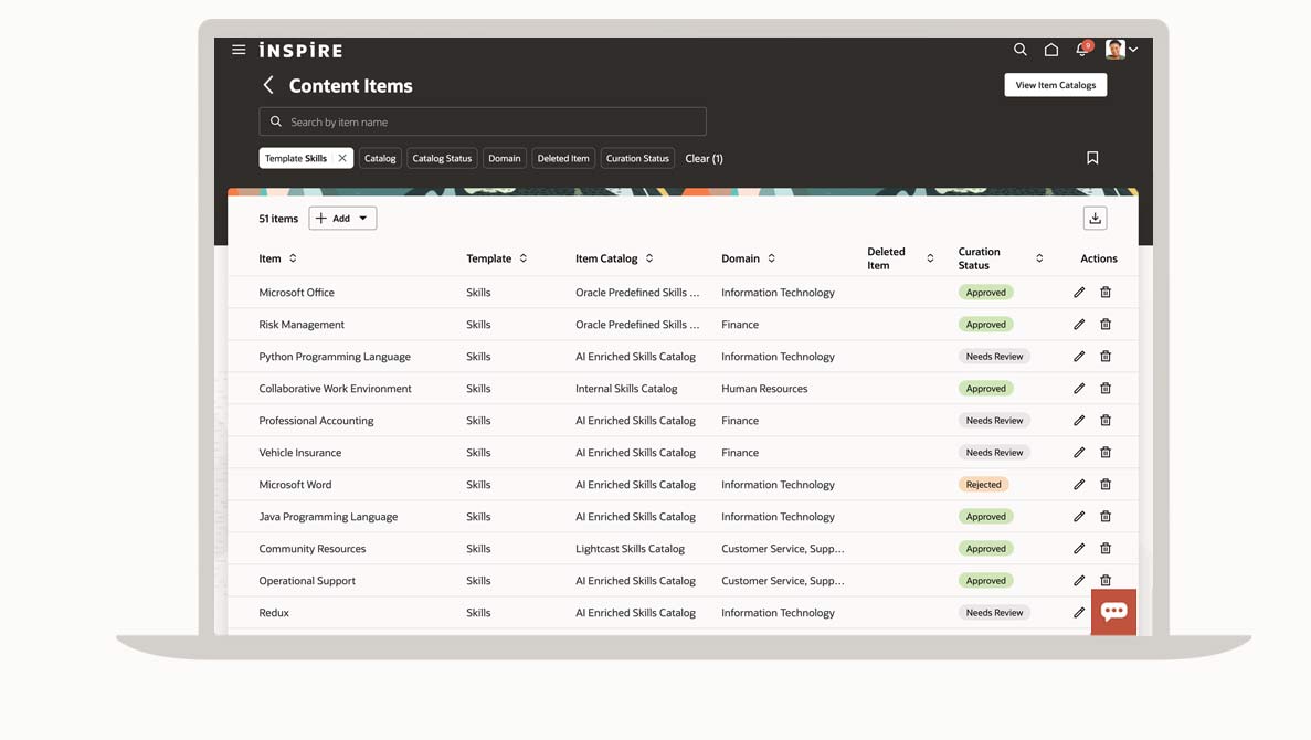 Further enhance your skills library by extracting and integrating skills data from your Oracle and external transactional data, such as recruiting or learning data.