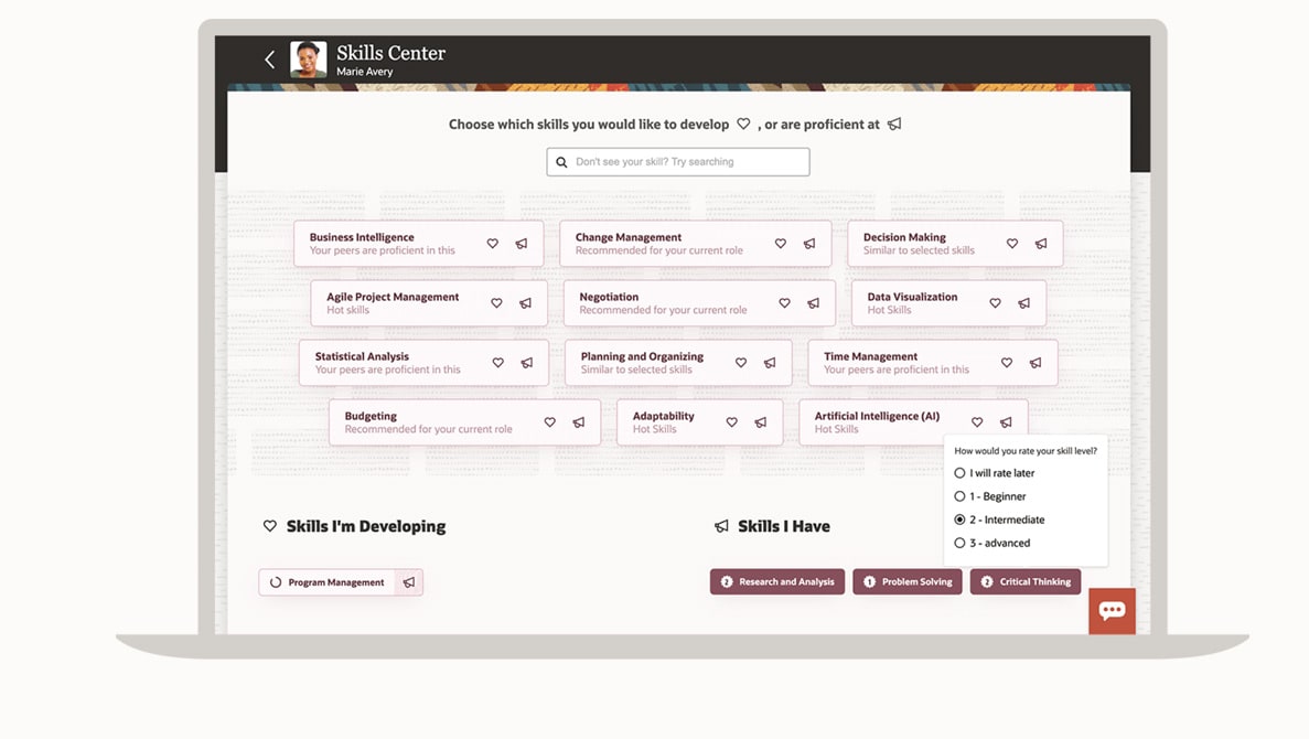 Let the technology help employees uncover different career options based on their current and developing skills.