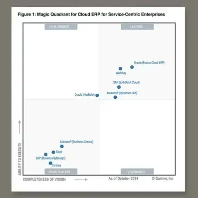 * Gartner® Magic Quadrant™ for Cloud ERP for Service-Centric Enterprises, November 4, 2024. Robert Anderson, Denis Torii, Sam Grinter, Naveen Mahendra, Tomas Kienast, Johan Jartelius.